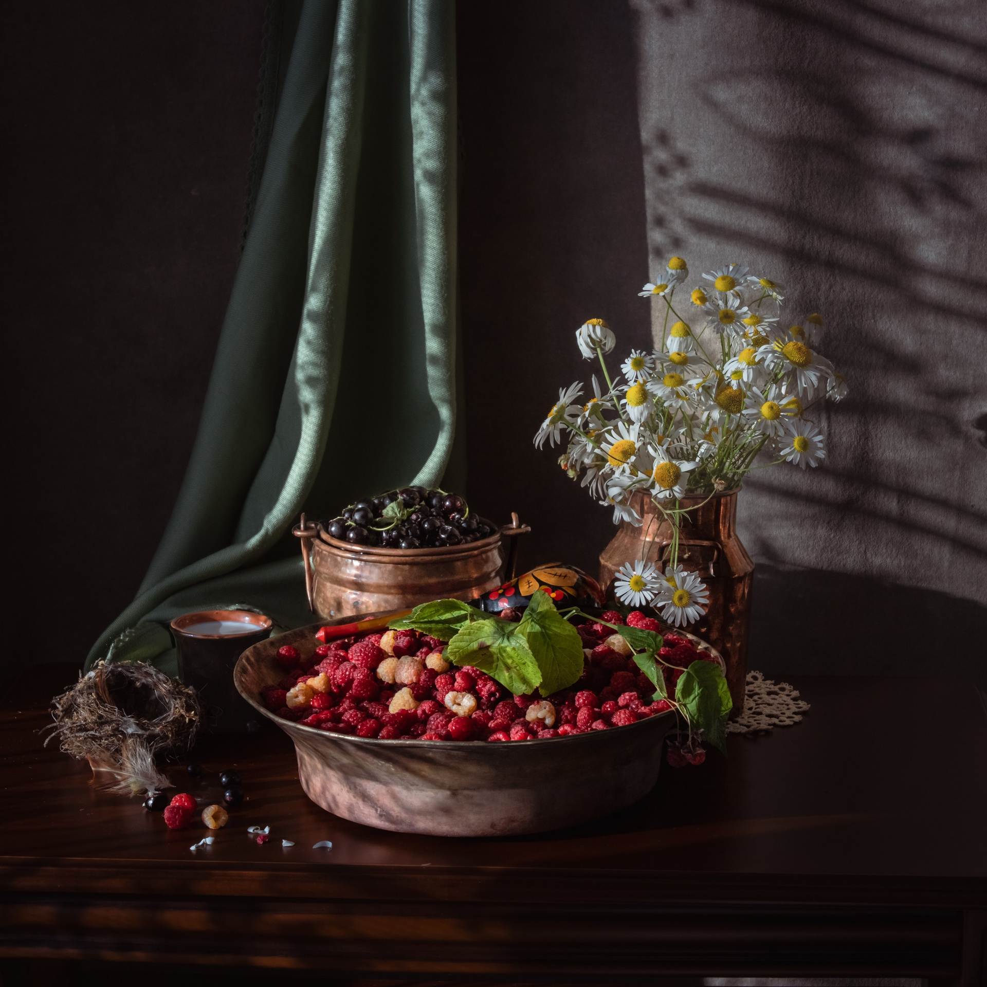 Малина. Терпкая, чуть с кислинкой. Та, что с нижних веток. Маруся под этими ветками устраивала засады на шмелей. Непутёвая. Потом вся в паутинке приходила, требовала комплиментов и вкусняшек за смелость.