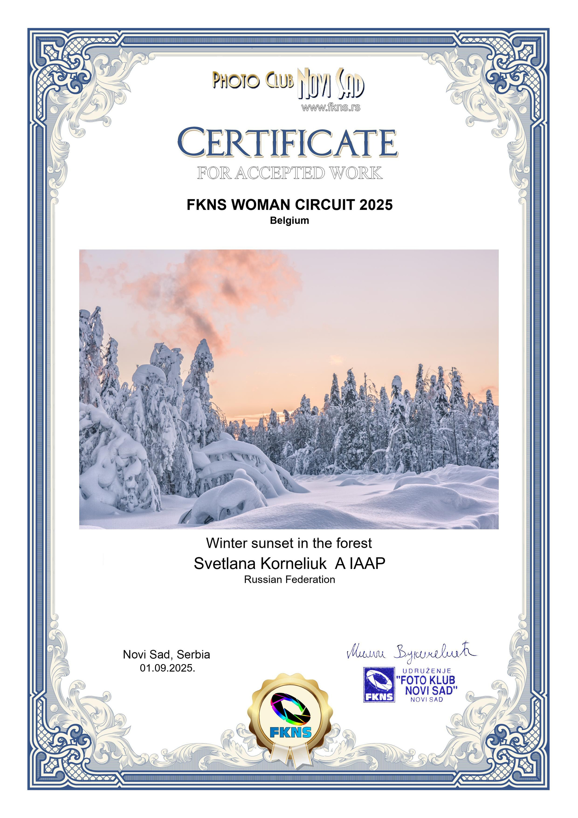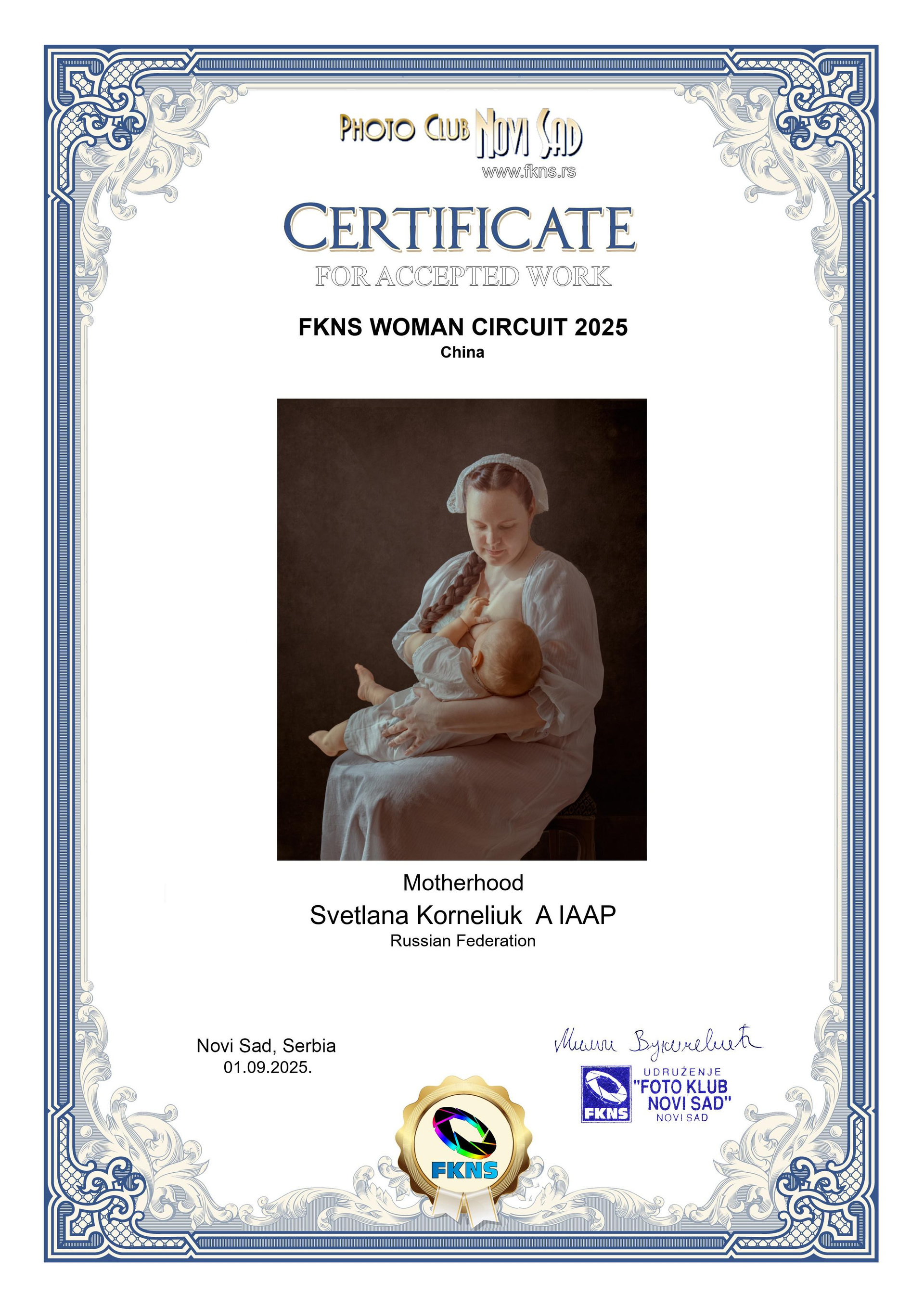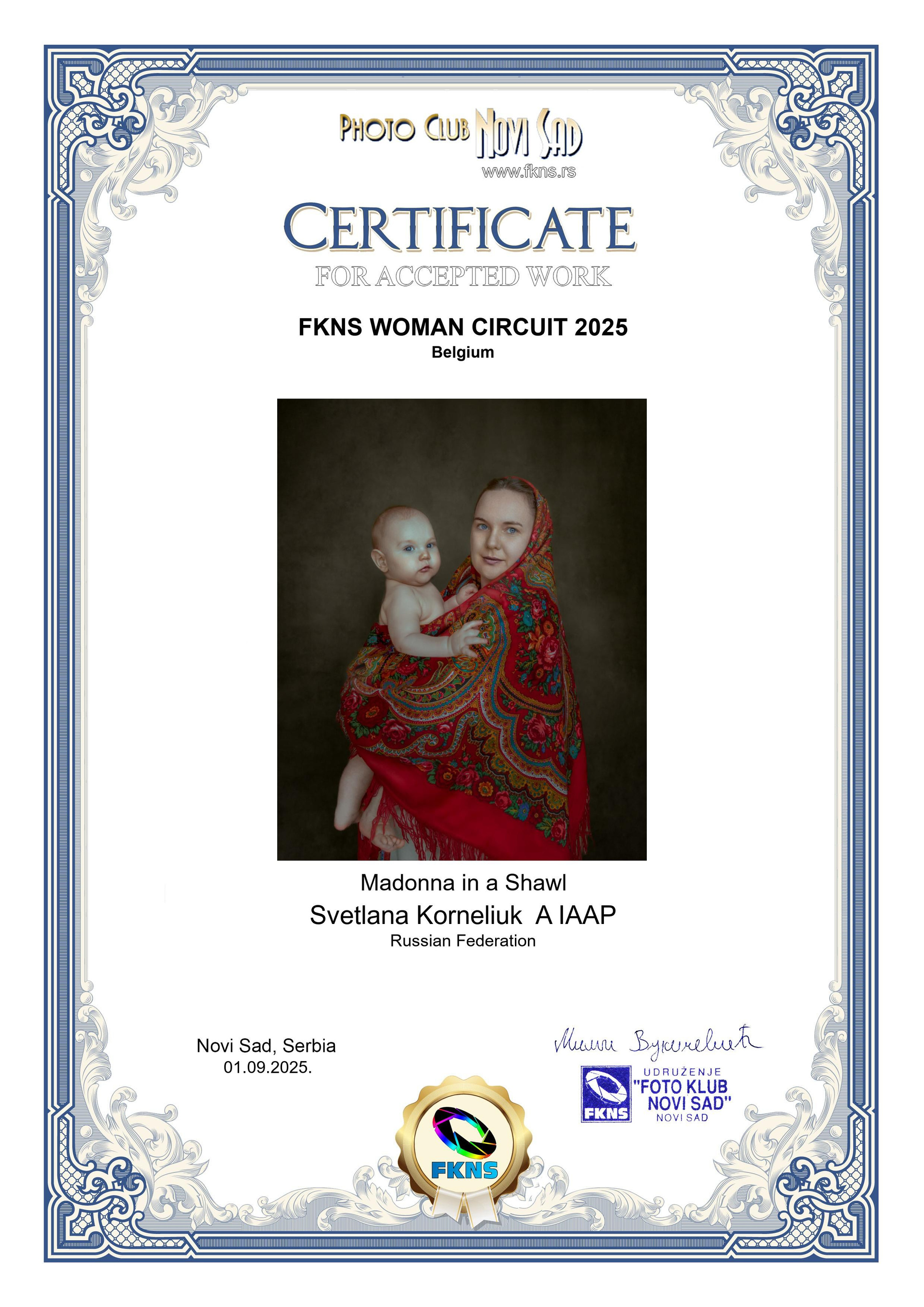 Хочу поделиться с вами приятными новостями! Недавно стали известны результаты международного кругового конкурса художественной фотографии FKNS WOMAN CIRCUIT 2025, который проходил в трёх странах — Бельгии, Китае и Сербии.