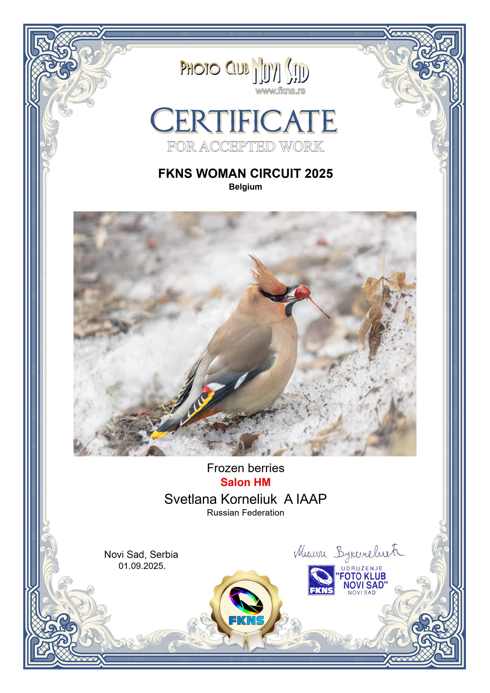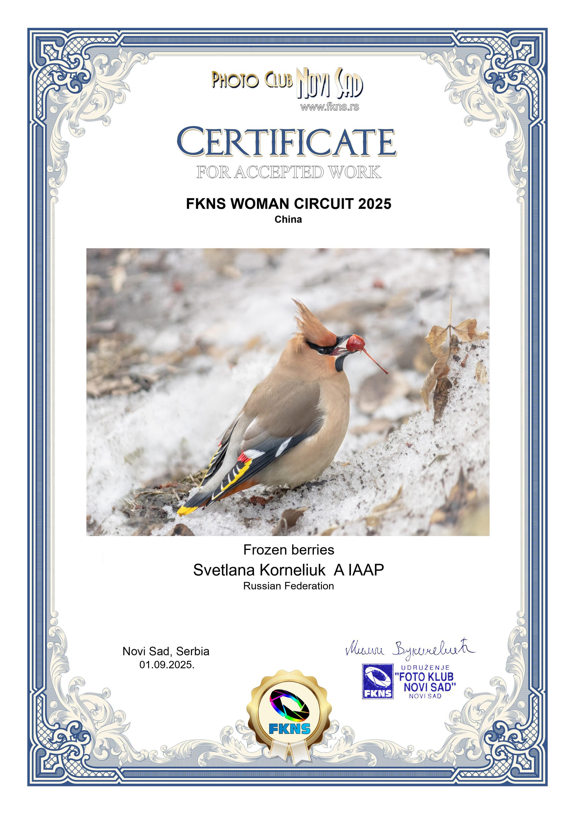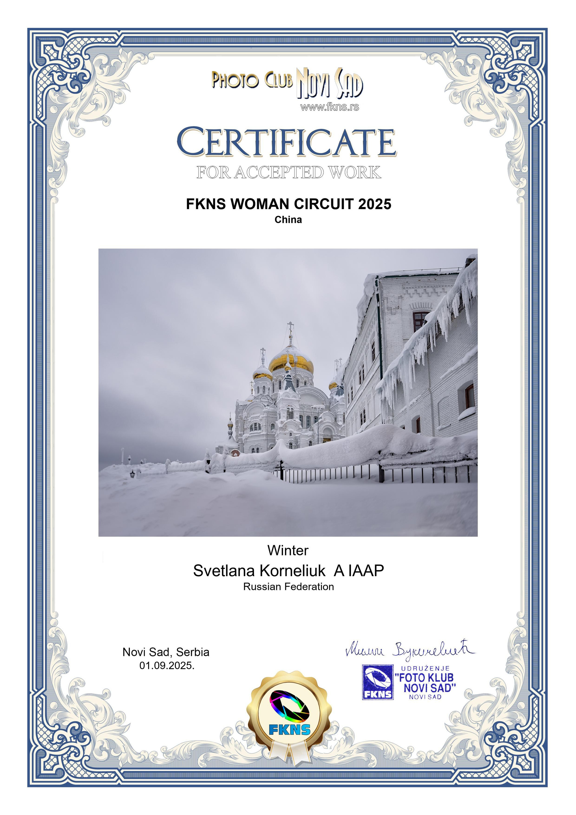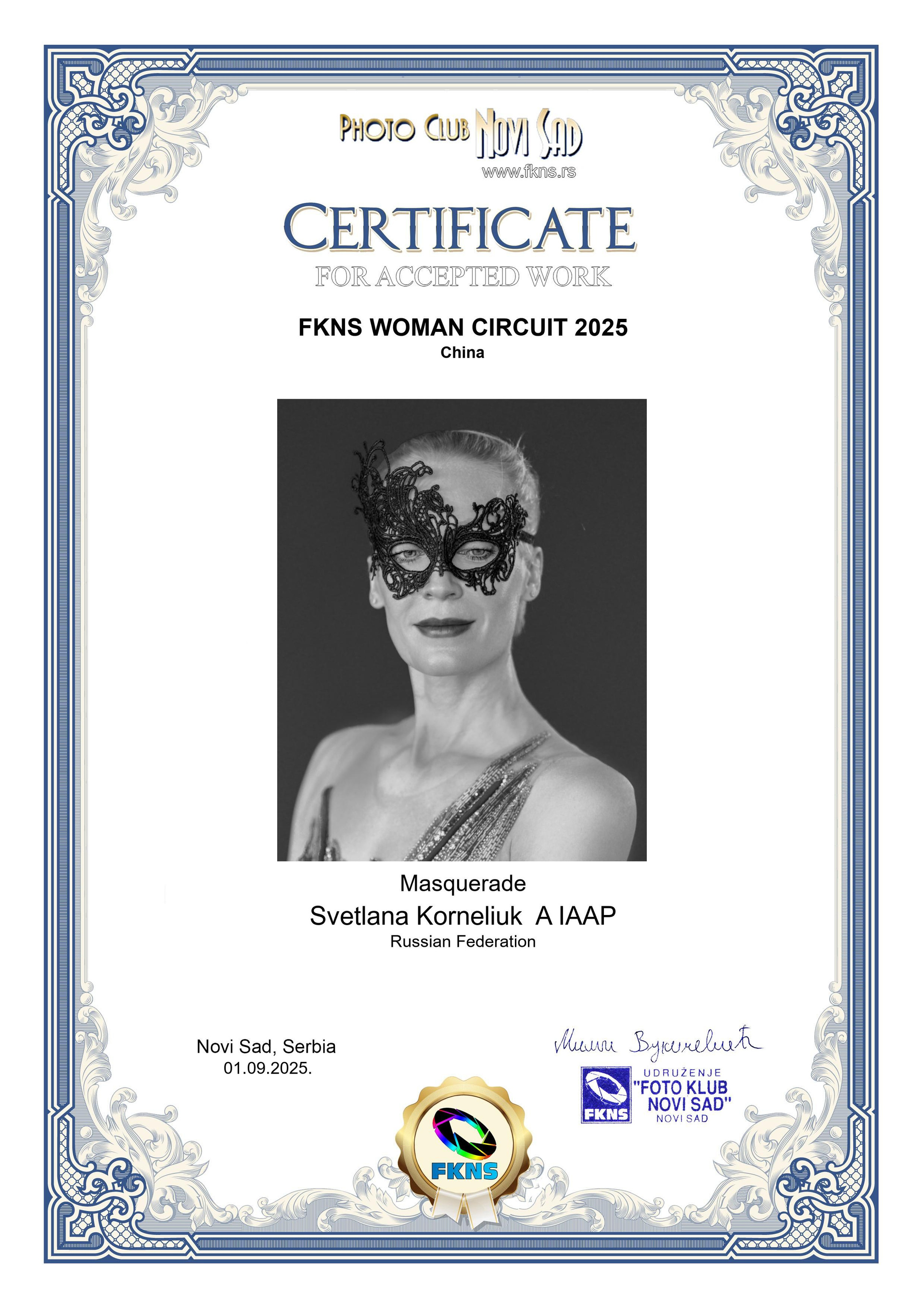 Хочу поделиться с вами приятными новостями! Недавно стали известны результаты международного кругового конкурса художественной фотографии FKNS WOMAN CIRCUIT 2025, который проходил в трёх странах — Бельгии, Китае и Сербии.