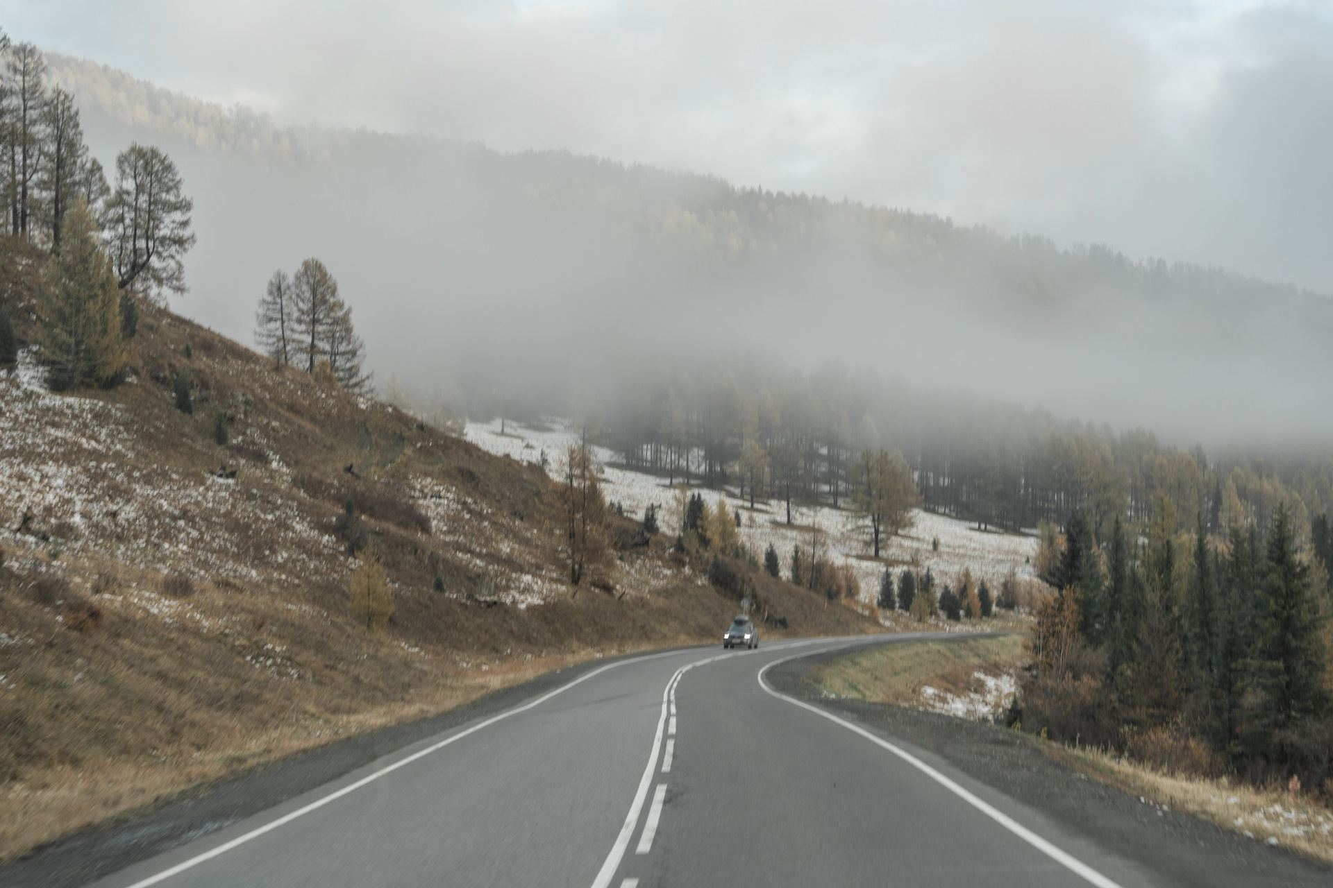 - Seminsky Pass, mysterious spots for travel photography in Altai, where the taiga is draped in fog, veiled in delicate snow—perhaps this is the start of that path to enlightenment.