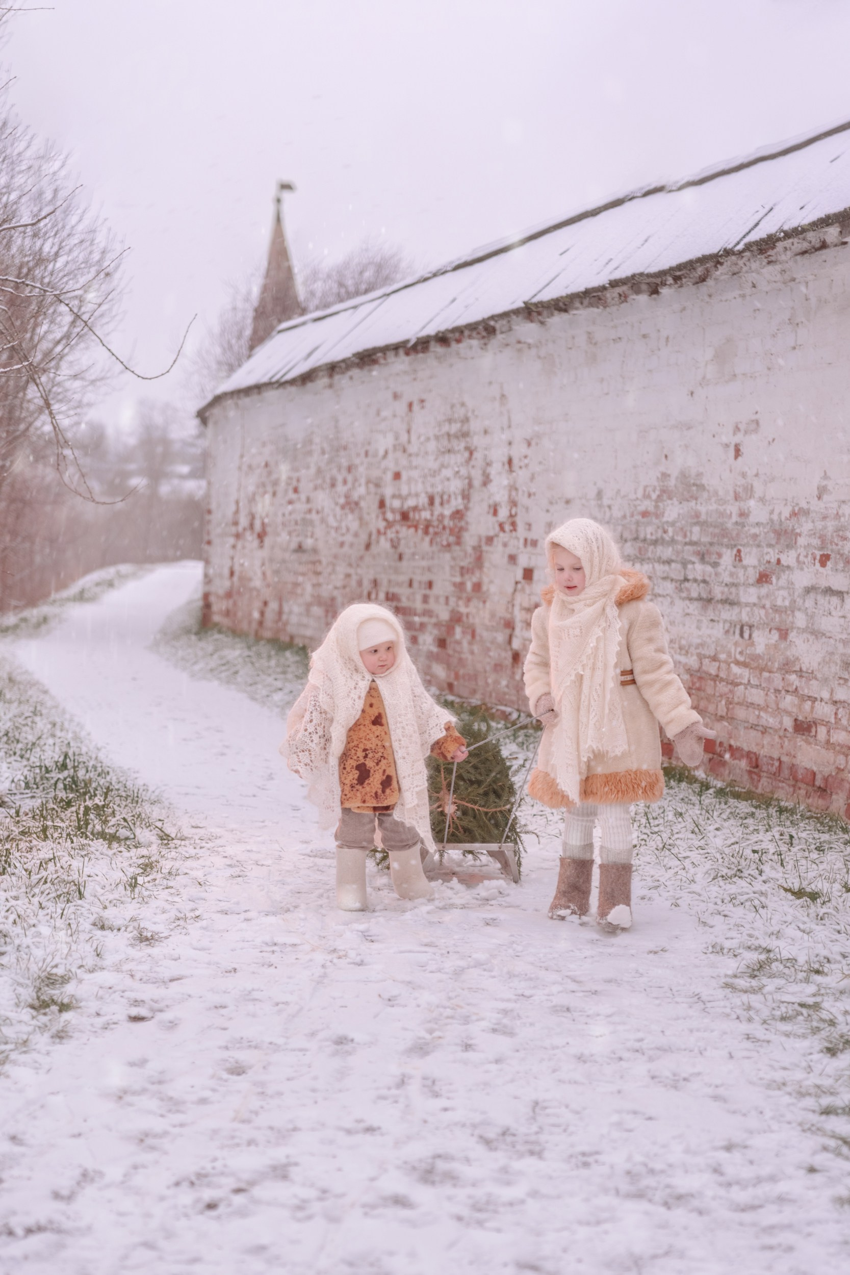 Очарование и умиление вызывают кадры малышей, укутанных в винтажные шубки и оренбургские пуховые платки, везущих елочку на старинных саночках. Зимняя фотосессия в русском городе с историей подарит вам незабываемые теплые эмоции.